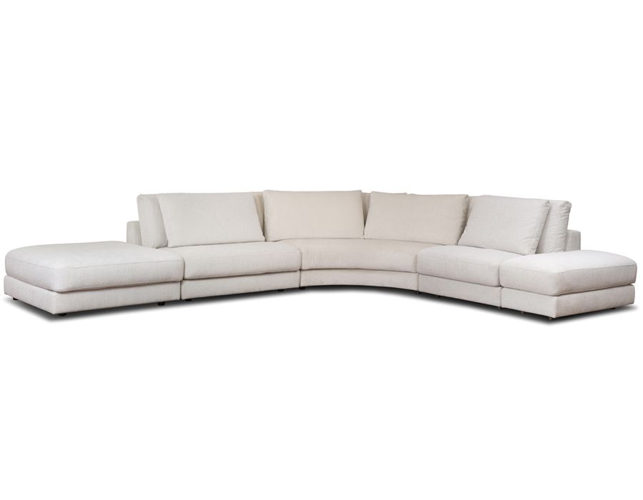 puf duży + sofa 1,5 osobowa + element narożny okrągły + sofa 1 osobowa + puf mały