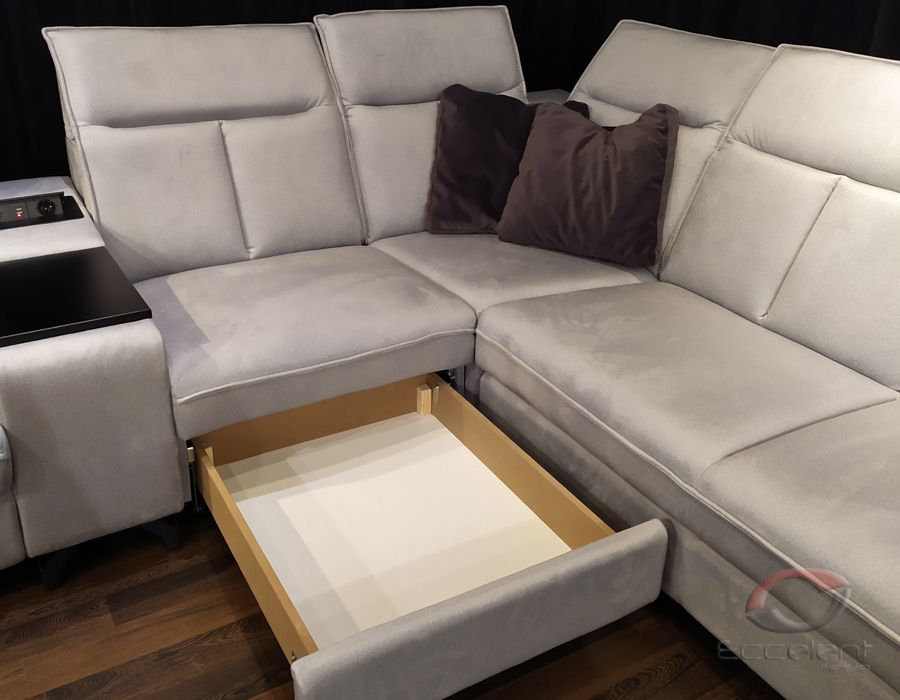 WAVE - Narożnik z funkcją spania, elektryczną funkcją relaks, pojemnikiem i szufladą na pościel (MS)