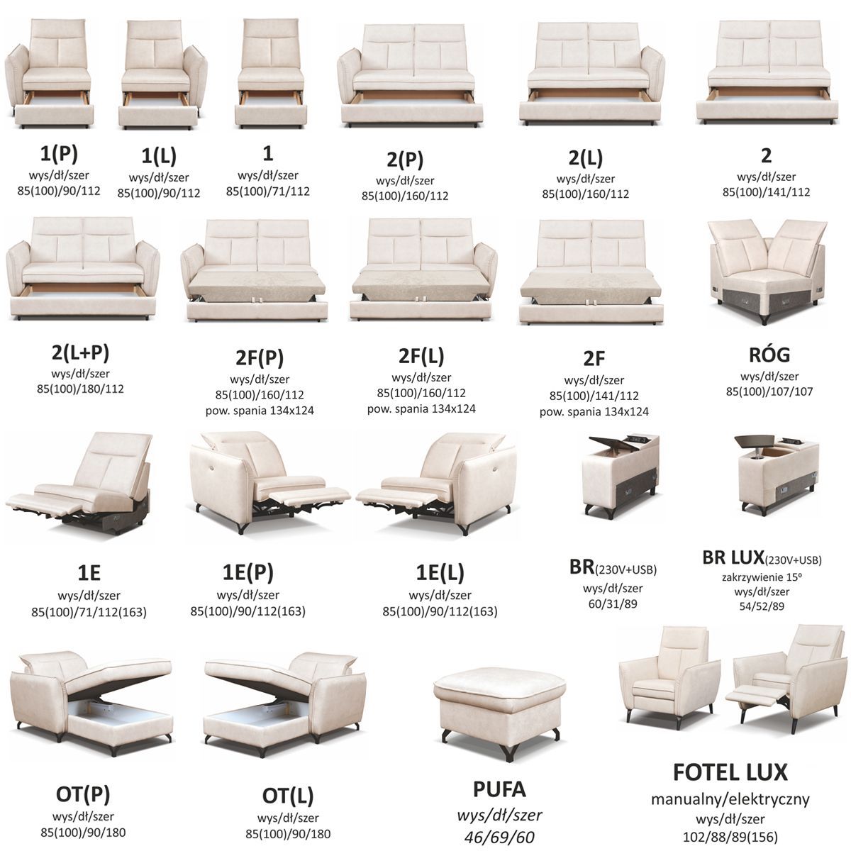 są regulowane zagłówki oraz elektryczna funkcja relaks. W kolekcji znajdziemy do wyboru szeroką gamę kolorystyczną