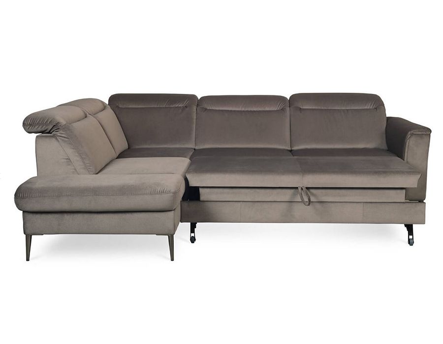 narożnik z możliwością spania i pojemnikiem na pościel. Wygodne siedzisko i regulowane zagłówki zapewnią komfort wypoczynku