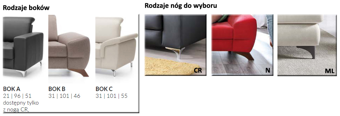 Dodatkowym atutem jest wybór boków i nóg pozwalających dostosować model do charakteru wnętrza.