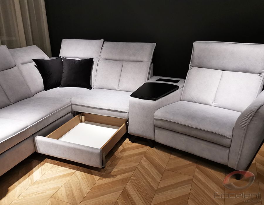 połączyć w jednym meblu wiele ciekawy rozwiązań, takich jak funkcja spania, funkcja relaks, barek z gniazdami 230V i portami