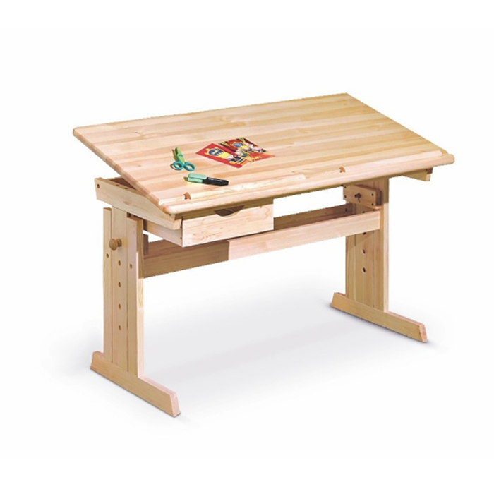 Biurko JULIA wykonane jest z drewna sosnowego lakierowanego a dzięki możliwości regulowania wysokości idealnie