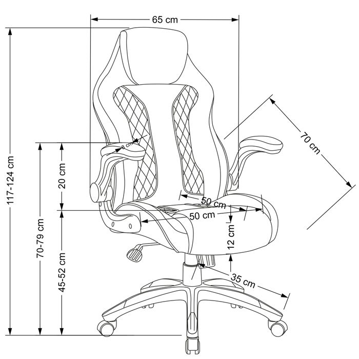 - Wysokość siedziska 45-52 cm