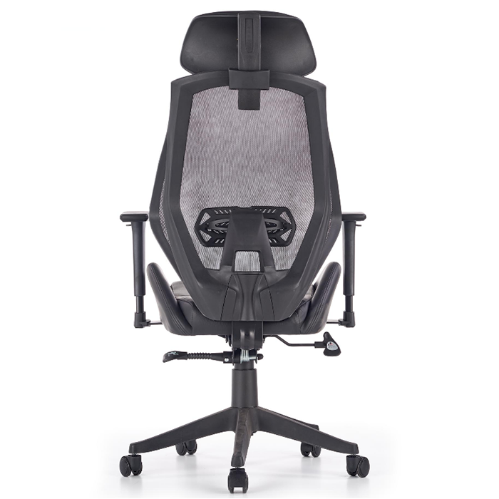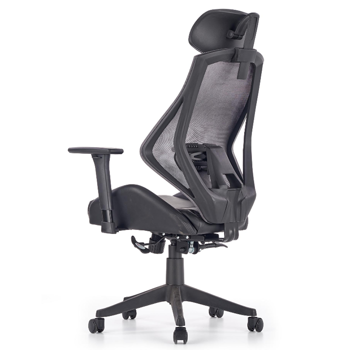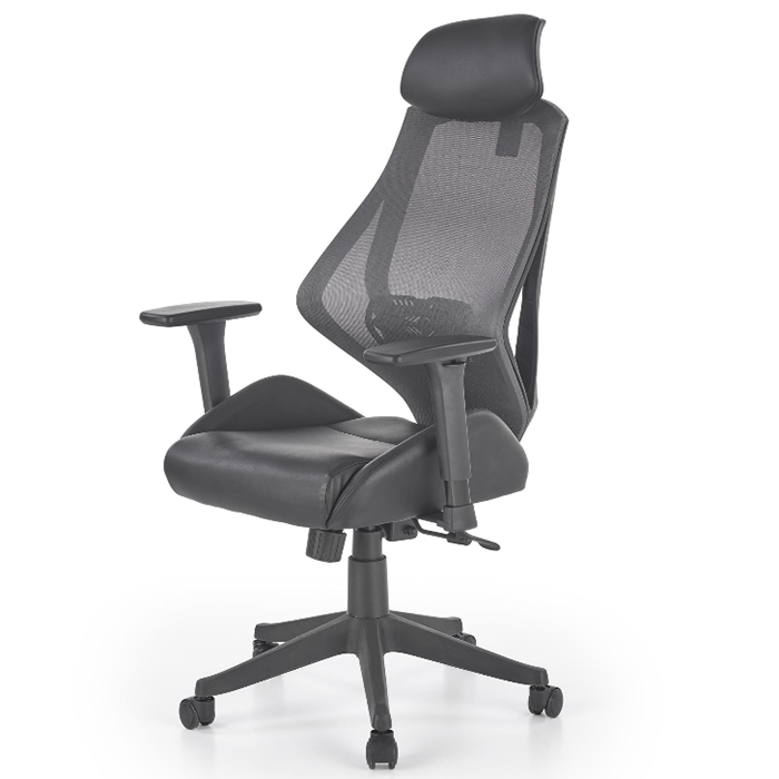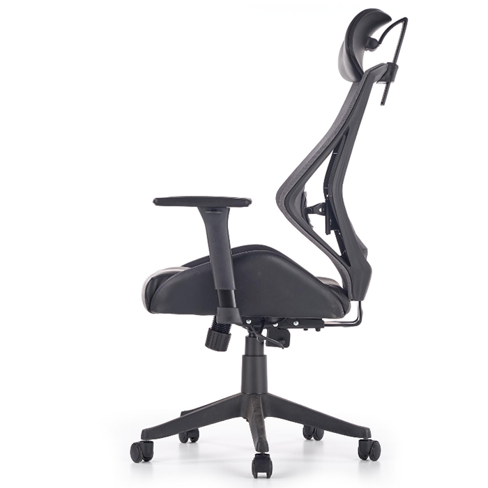 HASEL to fotel o nowoczesnym wyglądzie i stylistyce, wykonany z eko skóry i siatki w kolorze czarno - popielatym. Doskonale