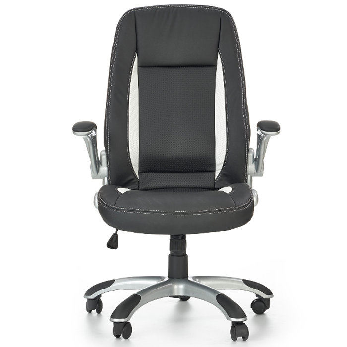 Czarny biały kolor jak i sportowy zarys fotela idealnie sprawdzi się w gabinetach, biurach i pomieszczeniach domowych.