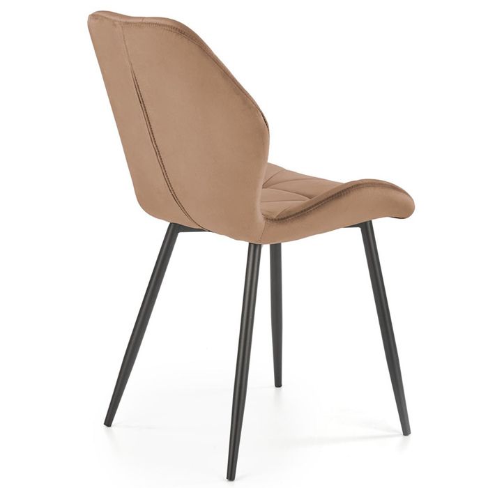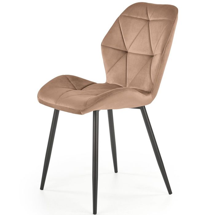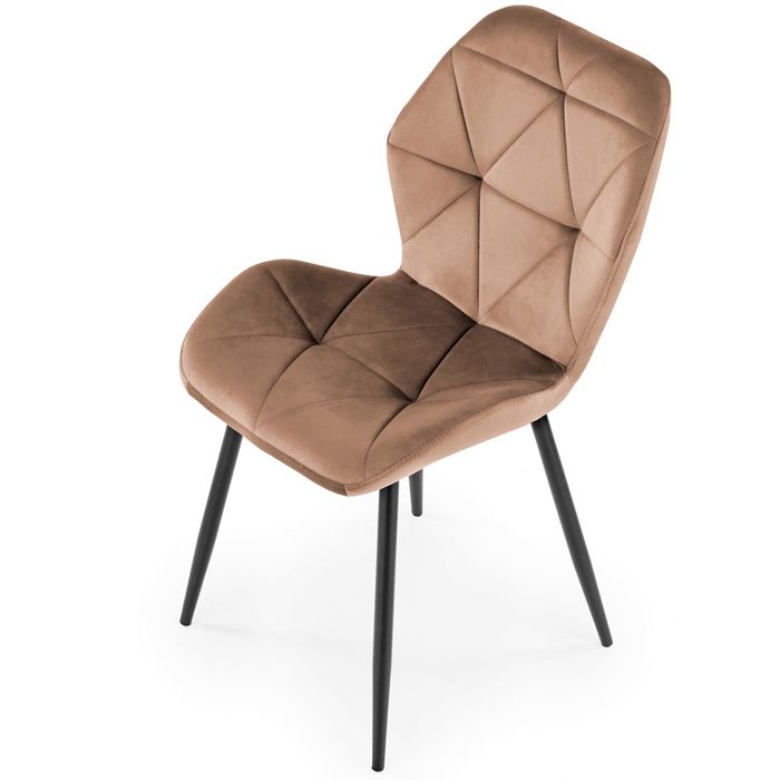 Oparcie i siedzisko mają nowoczesny kształt, a elegancji nadają przeszycia w romby.