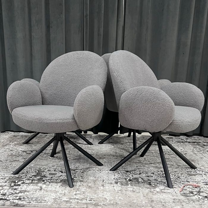 Gruba, przyjemna w dotyku tkanina boucle o supełkowej strukturze pozwala na dostosowanie się mebla do wielu aranżacji.