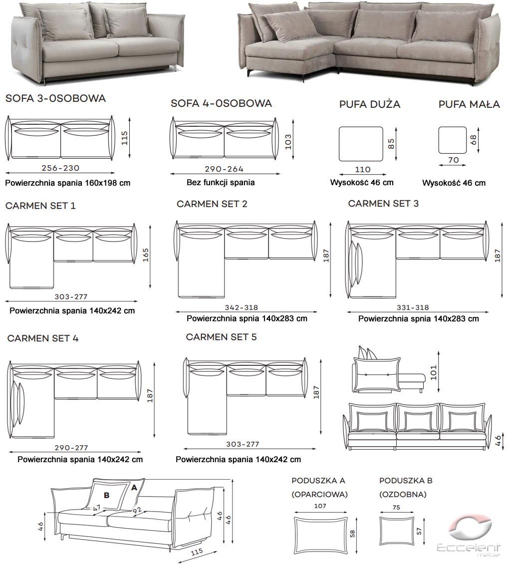 kolekcję Carmen. Duży wachlarz tkanin oraz dobór nóg sprawi, że mebel otrzyma indywidualny