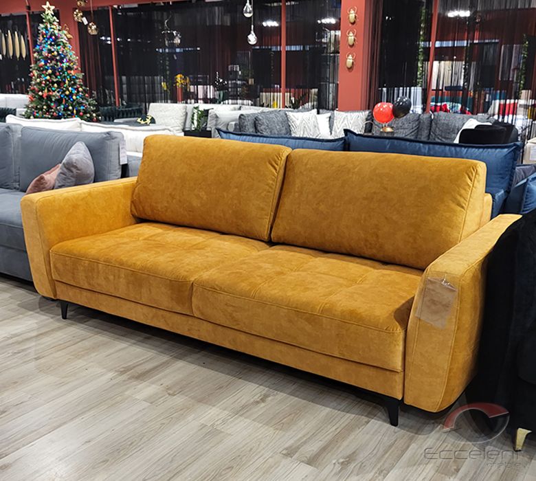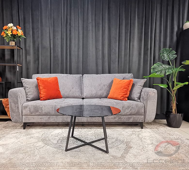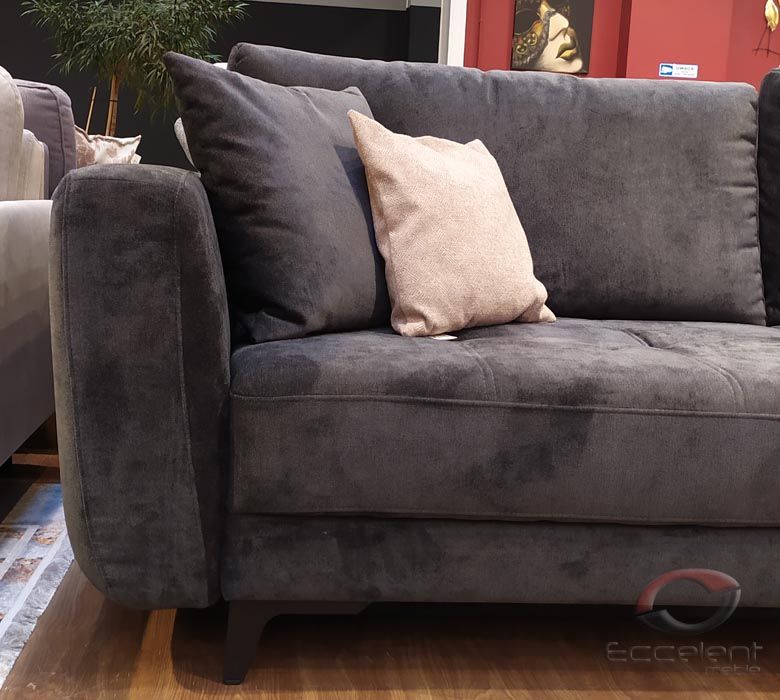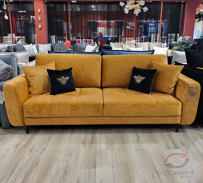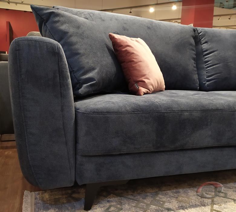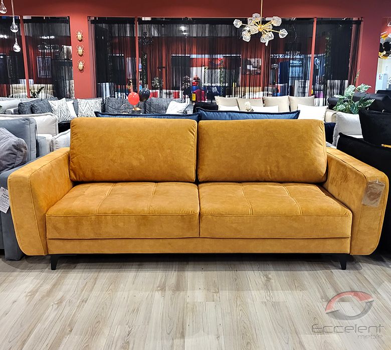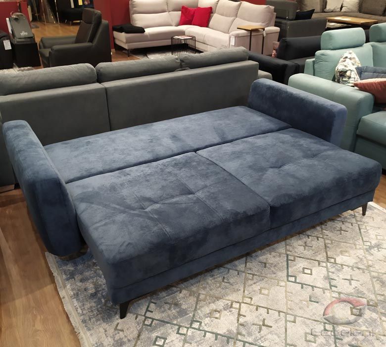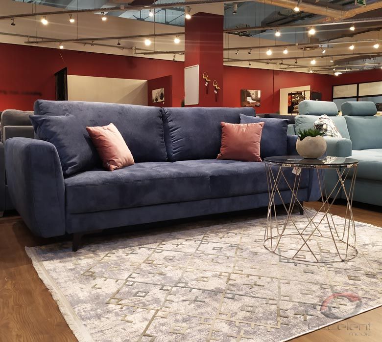 Przeszycia na siedziskach dodają sofie wdzięku i oryginalności. Duża powierzchnia spania oraz pojemnik na pościel