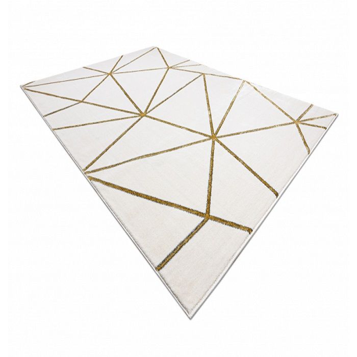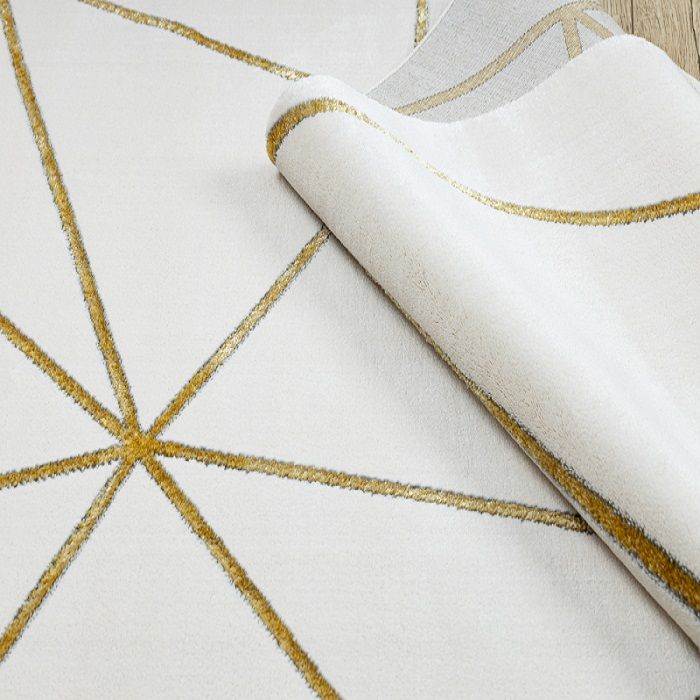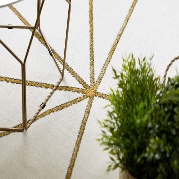 Intrygujący geometryczny złoty wzór podkreśli nowoczesność oraz elegancję dywanu.