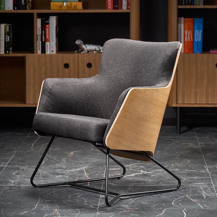 Stylowy fotel CHILLOUT dzięki zestawieniu tkaniny z naturalną okleiną, wpasuje się w każde wnętrze.