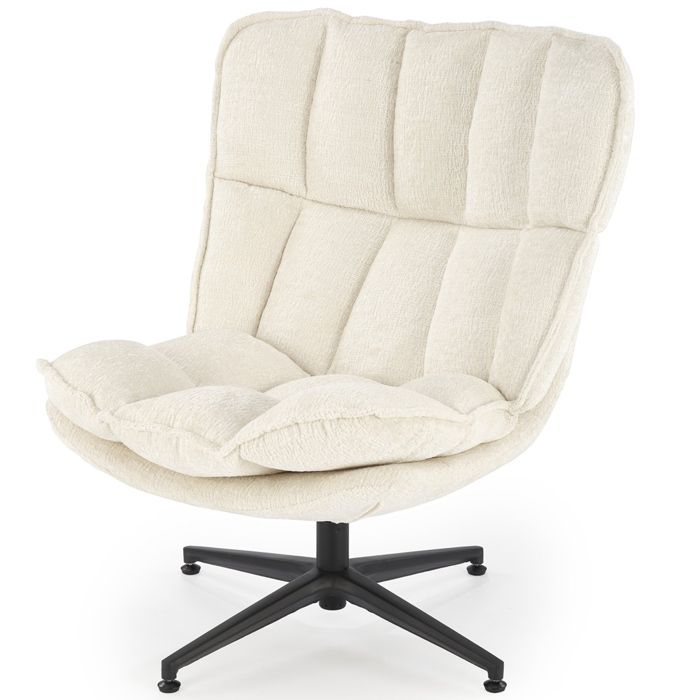 Został wykonany w tkaninie kremowej osadzony na czarnych, stalowych nogach.