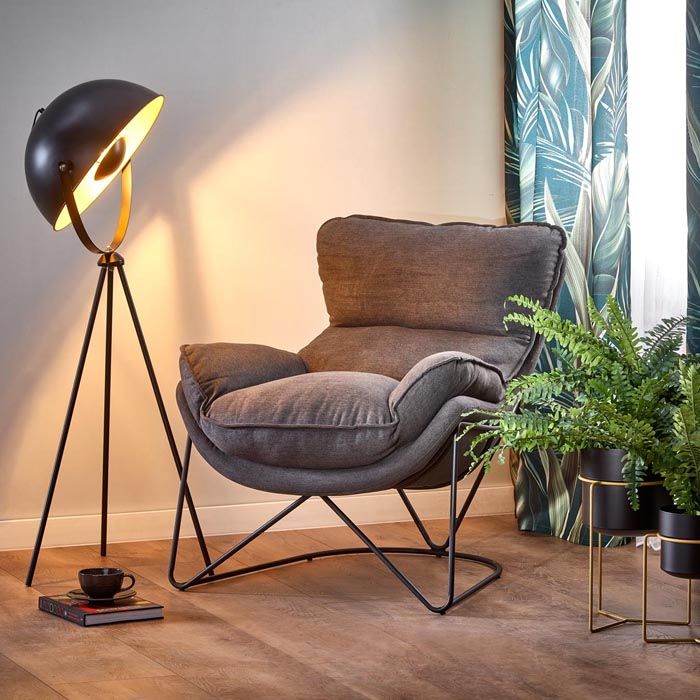 VOLKER został wykonany w tkaninie popielatej i osadzony na czarnych, metalowych nogach.