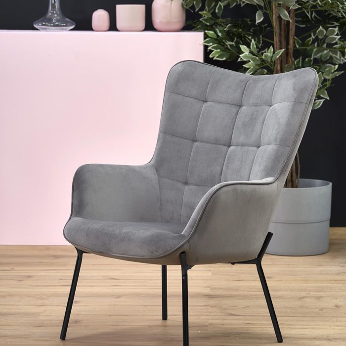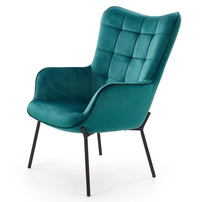 Fotel CASTEL łączy w sobie wygodę i elegancję. Wysokie pikowane oparcie oraz głębokie siedzisko