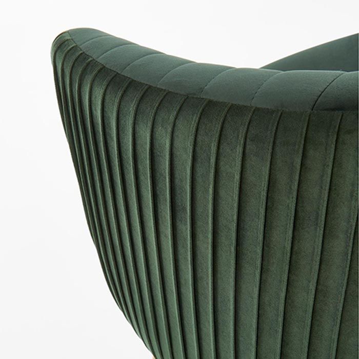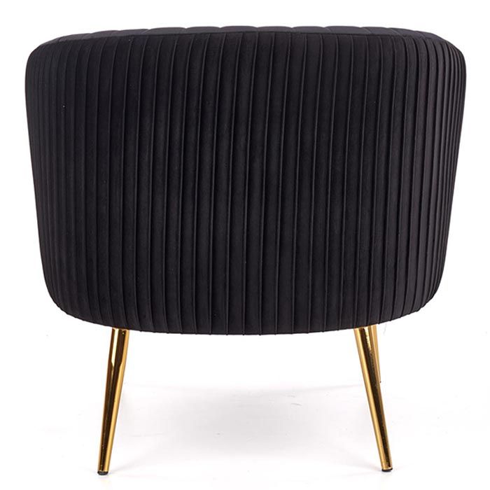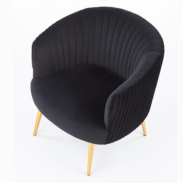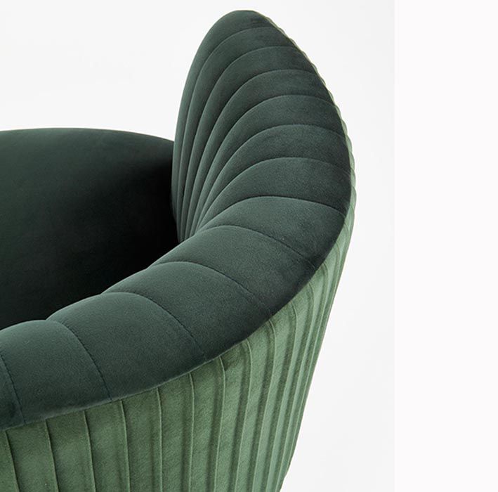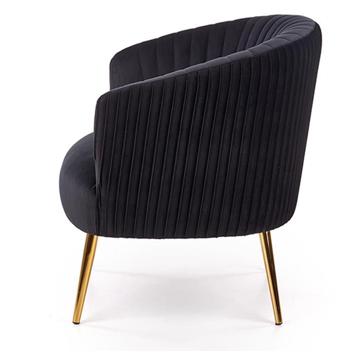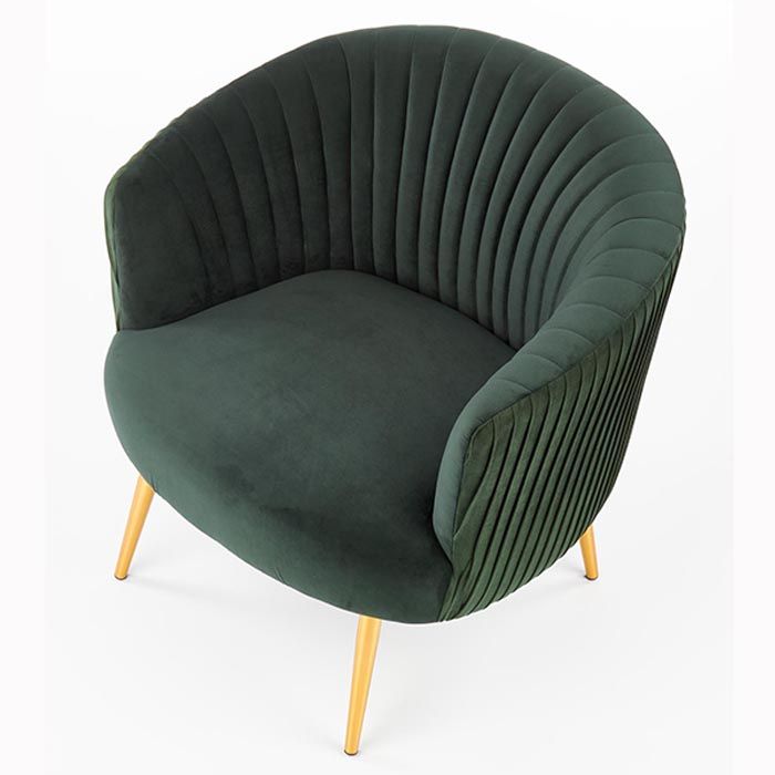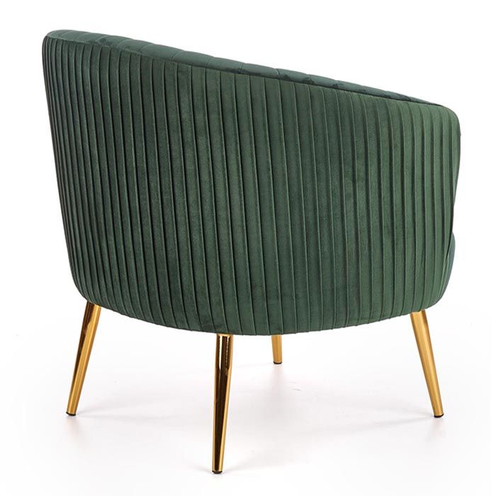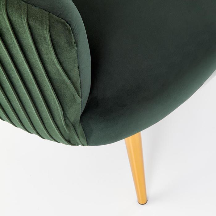 na oparciu nadają elegancji, a złote nogi lekkości. Fotel dobrze sprawdzi się w poczekalniach, przedpokojach,