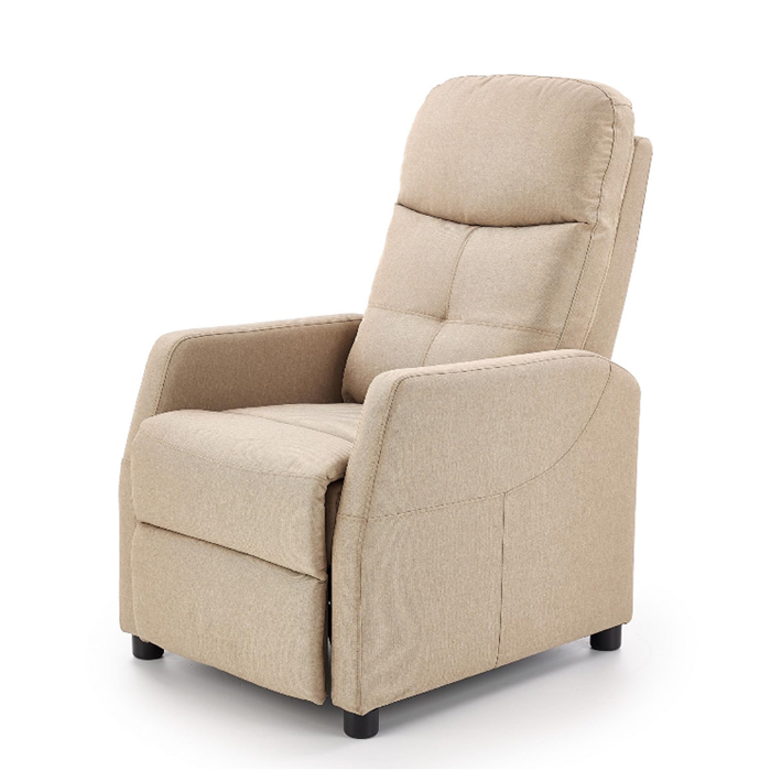 oraz funkcja rozkładania podnóżka zapewni prawdziwy relaks. Fotel ma wąskie podłokietniki, a więc można