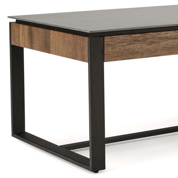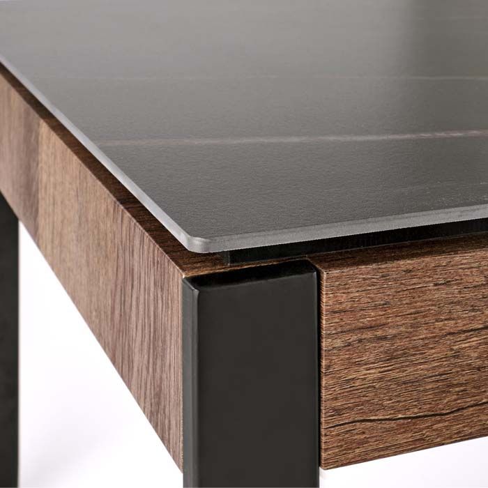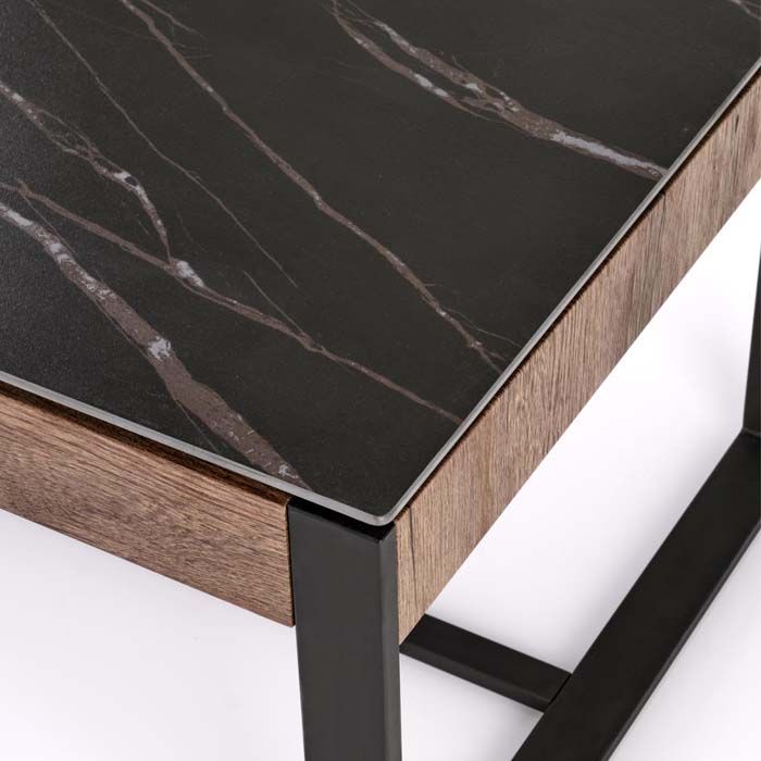 nowoczesne wnętrza. Blat ze spieku idealnie komponuje się z czarnymi stalowymi nogami.