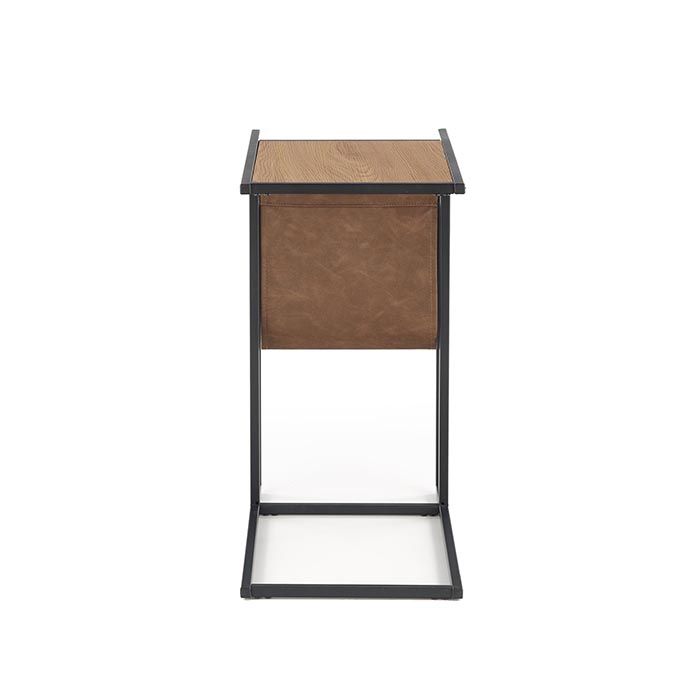 Połączenie wysokiej jakości płyty MDF okleinowanej w kolorze złotego dębu z czarną stalową nogą