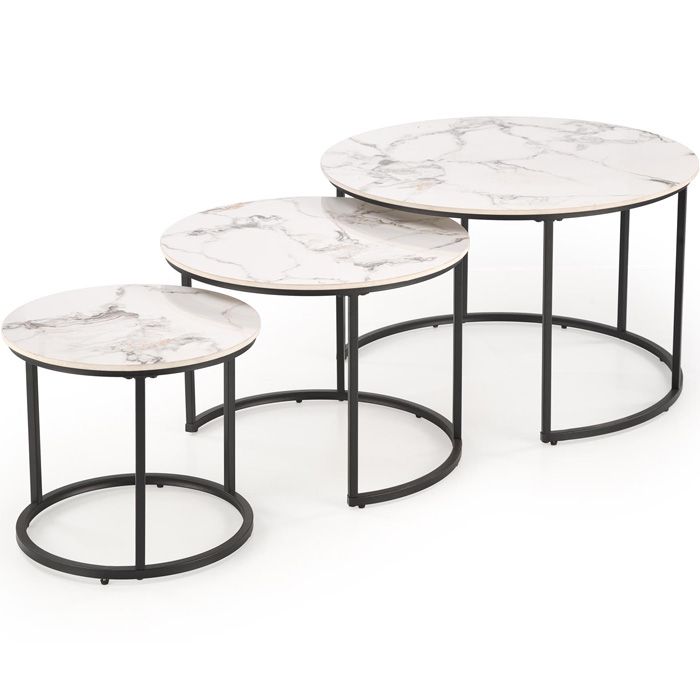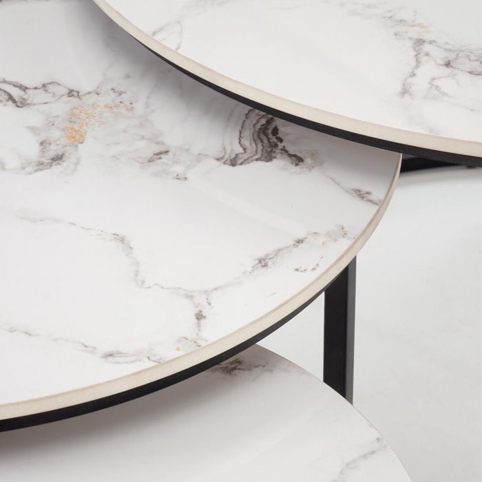 Zestaw ław GILDA charakteryzuję się pięknym marmurowym blatem. Nogi ław są wykonane ze stali malowanej
