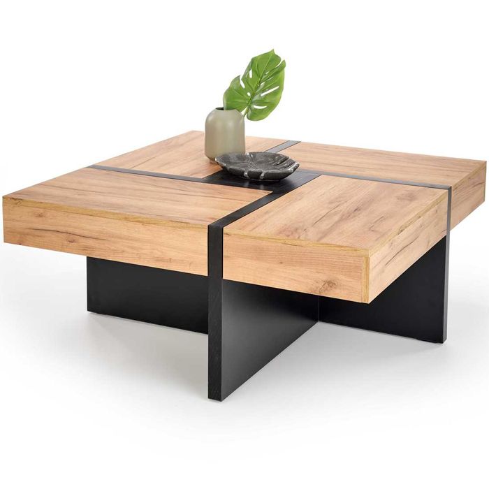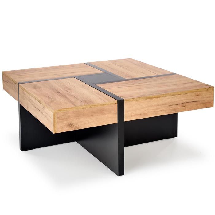 loftowych i nowoczesnych wnętrz. Blat ławy stanowią cztery mniejsze kwadraty, które się unoszą i tworzą schowki.