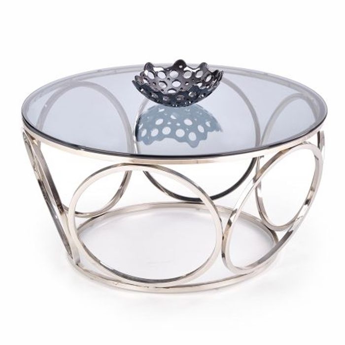 nowoczesne wnętrza. Szklany blat idealnie łączy się ze srebrnymi, ciekawie wygiętymi stalowymi nogami. Blat jest