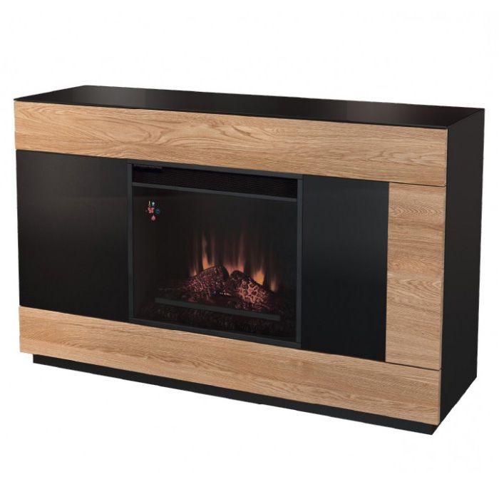 Pierwsza z nich to kontrastowe zestawienie dębu naturalnego z czarnymi wstawkami ze szkła oraz tkaniny.