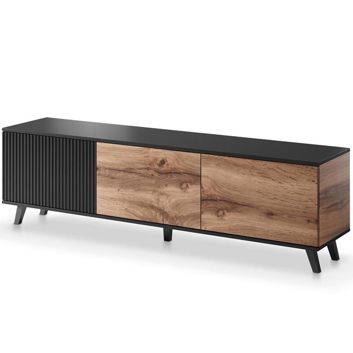 ryflowanych czarnych frontów i dębu wotan nadaje meblu nietuzinkowego wyglądu. Random to kolekcja,