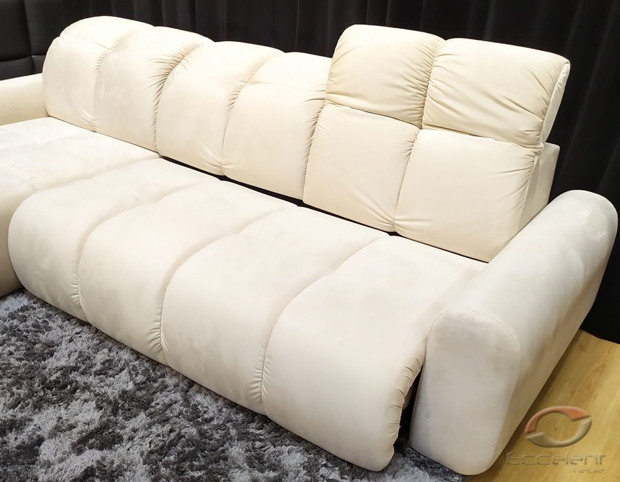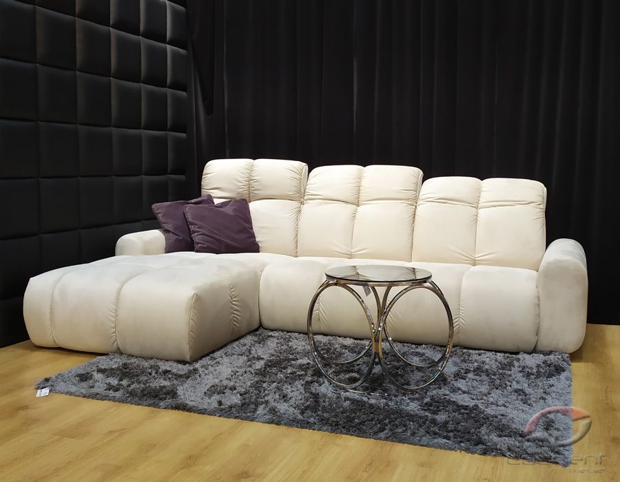 Nowoczesny i komfortowy narożnik BULLET. Podłużne pikowania dodają meblu elegancji, a dzięki regulowanym
