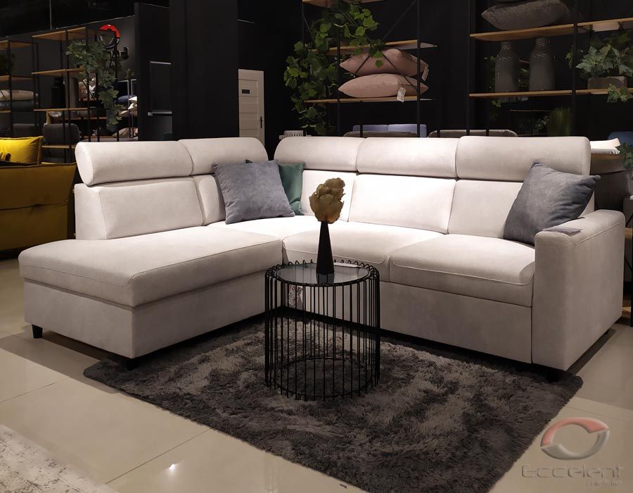 Proste kształty bez zbędnych ozdób sprawiają, że narożnik jest bardzo uniwersalny i elegancki.