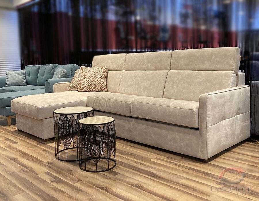 Zgrabne boki modelu sprawią że mebel nie wygląda masywnie nawet w małych pomieszczeniach. Funkcja spania jaka została