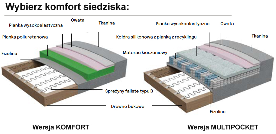- oparcie: pianka poliuretanowa, poduchy z wypełnieniem silikonowyo-piankowym