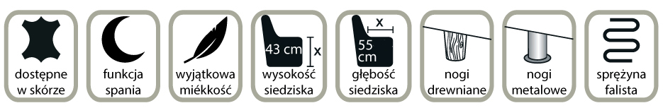 fotela, oraz sof w 3 wersjach. Cechuje je wysoki komfort użytkowania oraz uniwersalny styl.