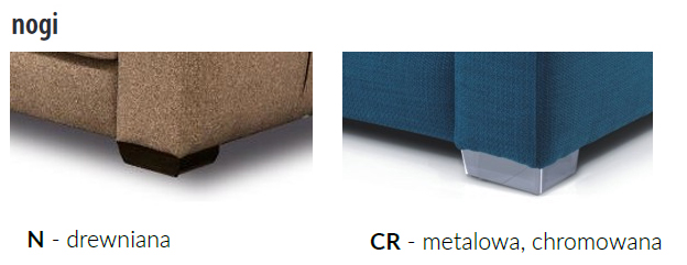 - do wyboru dwa rodzaje nóg: drewniane (kolorystyka N) lub metalowe (chromowane)