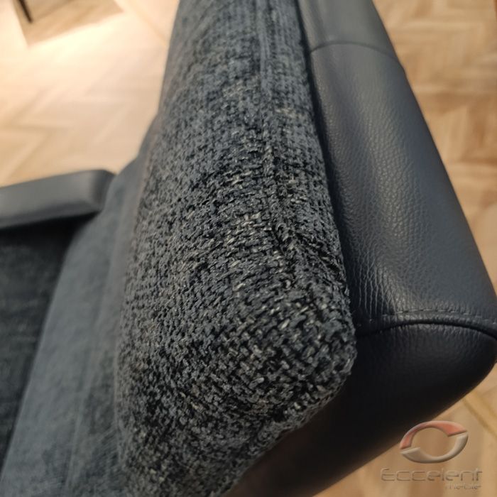 - wykonany w dwóch różnych materiałach obiciowych (połączenie naturalnej skóry z tkaniną).
