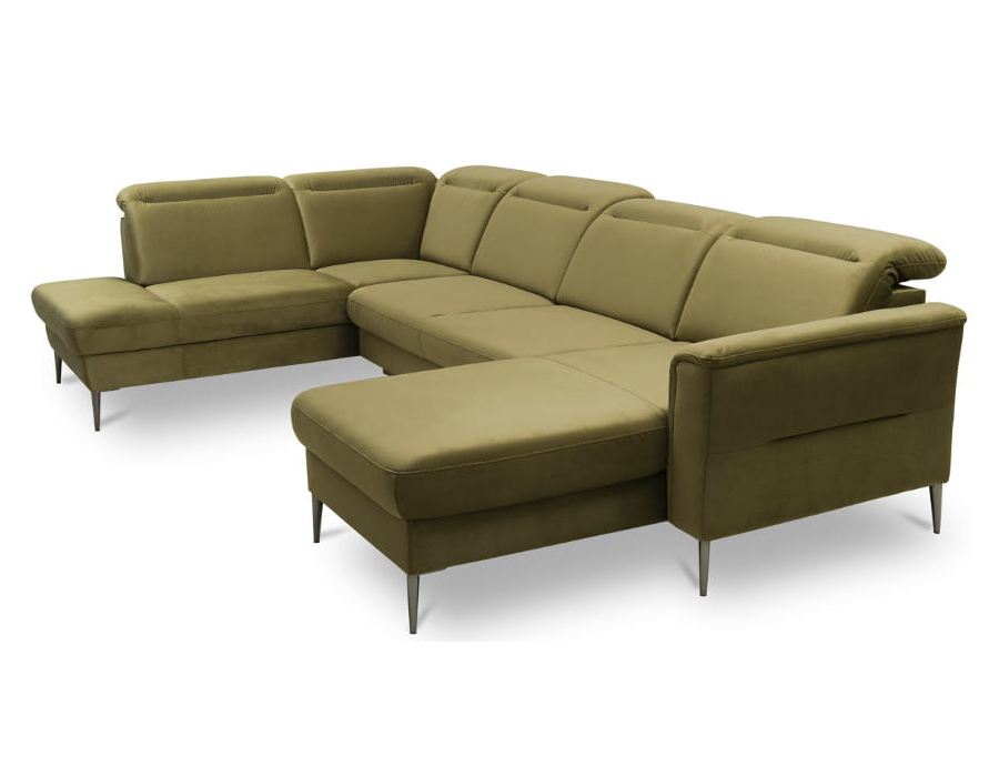 gronie. Dzięki wysokim nóżkom oraz regulowanym zagłówkom, narożnik wygląda lekko i nie przytłacza rozmiarami.