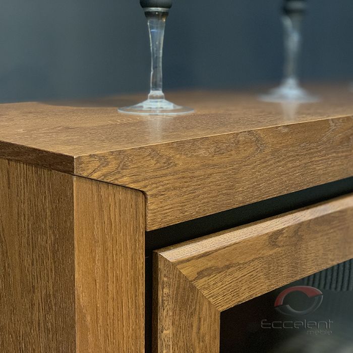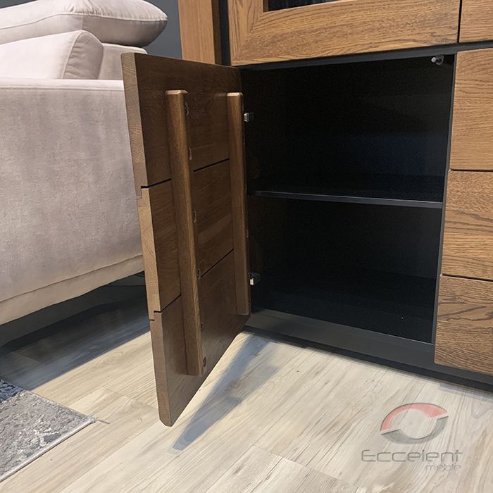 bryły, fronty z litego drewna dębowego oraz korpusy z naturalnej okleiny dębowej znakomicie komponują się w nowoczesnych