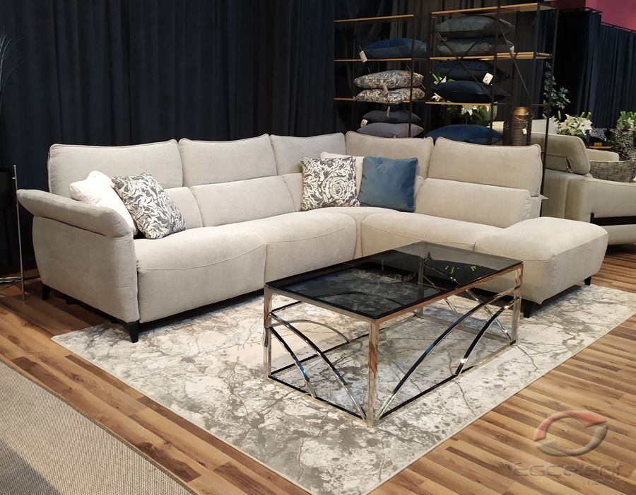 CHALLANGER to elegancki narożnik w nowoczesnym stylu. Wysokie nóżki i charakterystyczny, wygięty podłokietnik