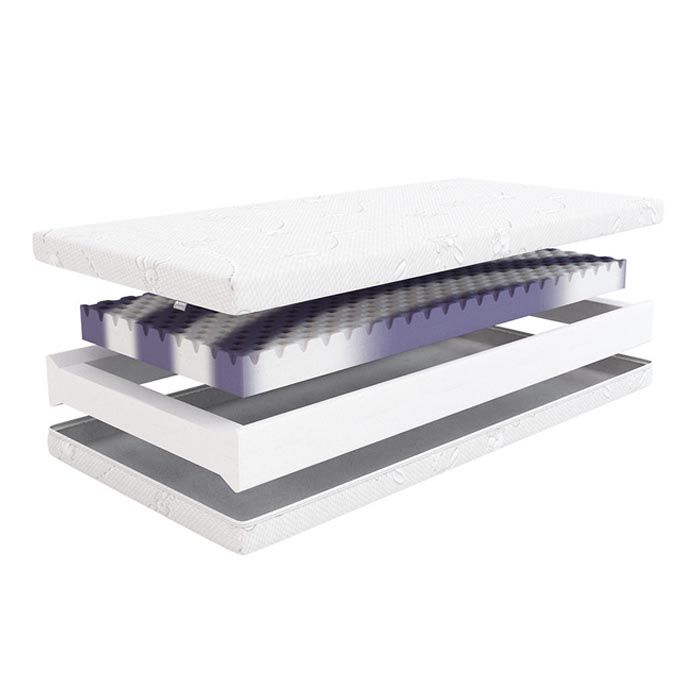 Materac dedykowany dzieciom, dwustronny z doskonale wentylowanym wkładem. Boczki materaca są wyższe od blatu,