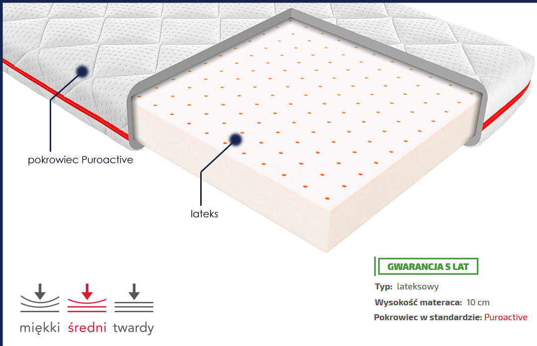 elastycznością punktową. Niezwykle wytrzymały i odporny na zużycie, odporny na trwałe zniekształcenia. Lateks