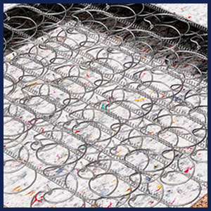 SPRĘŻYNA BONELL wykonana z wysokogatunkowego drutu o średnicy 2.2 mm. Łączenia tych sprężyn wykonane są z drutu o średnicy 1.8 mm. Taka konstrukcja zapewnia dużą sztywność oraz trwałość tego typu wkładu. Wysokość wkładu ma 11 cm, a gęstość sprężyn to ok. 111/m2. |