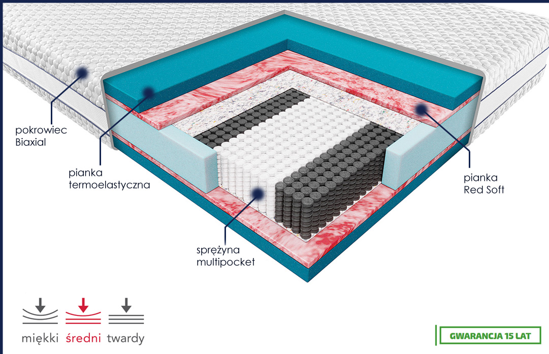 metr kwadratowy zapewnią stabilne podparcie oraz punktowe dopasowanie się do ciała. Dzięki podziale na 7 stref twardości